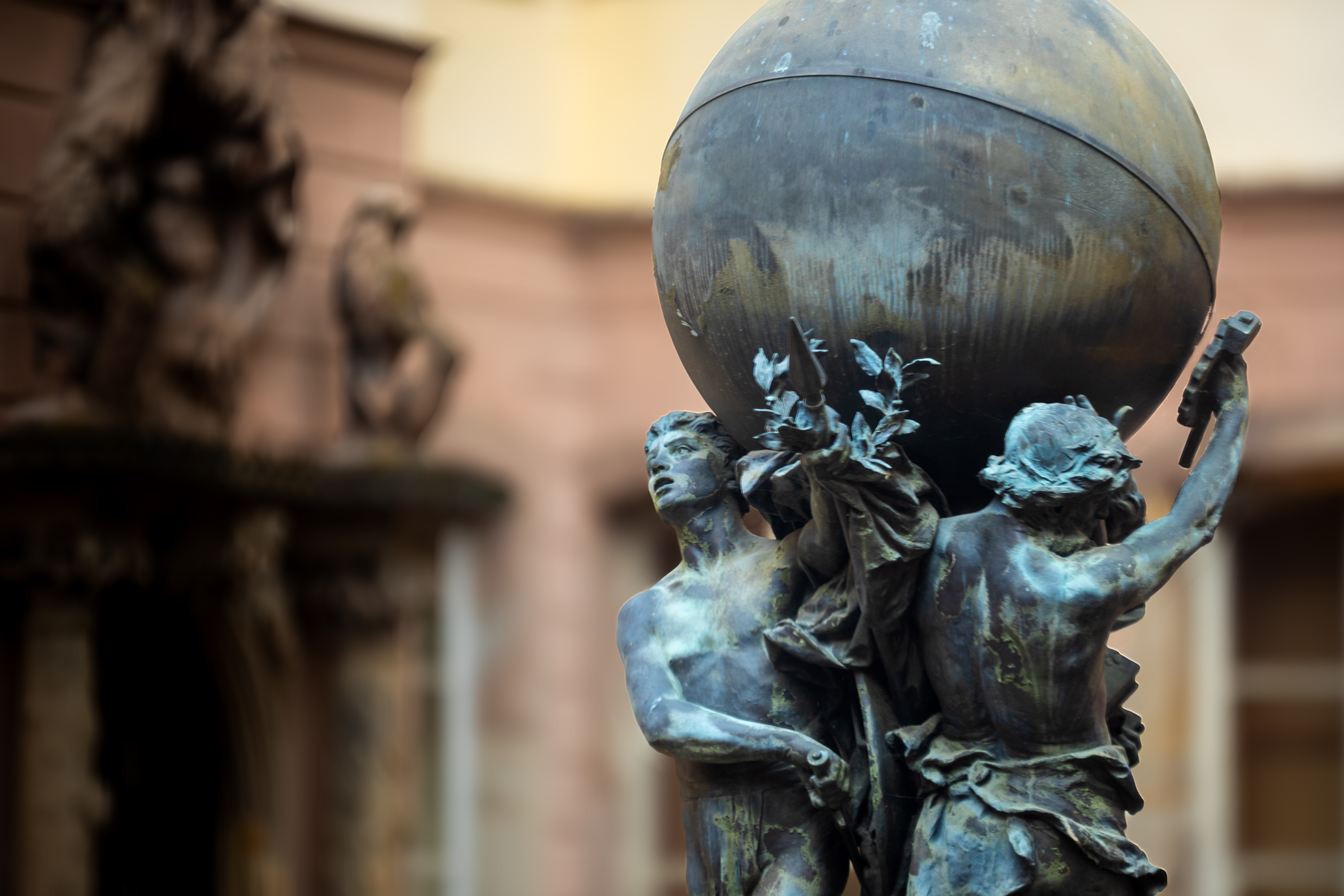 Les Grands Soutiens du Monde représente trois figures allégoriques portant le globe terrestre :