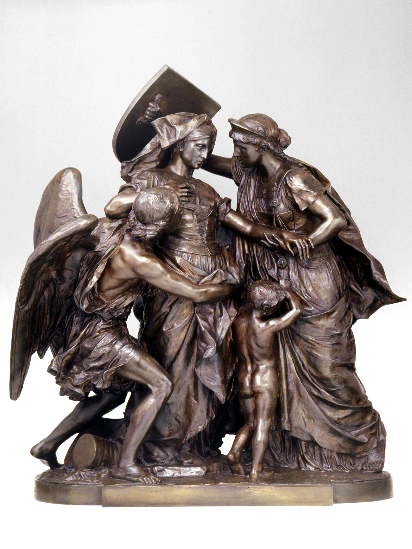 A la même époque il travaille pour la Ville de Belfort à un monument célébrant la résistance de la cité au siège de 1870 : le Lion de Belfort (1872-1880). Nommé commandeur de la Légion d’honneur en 1887, il est alors un statuaire de renom tant en France qu’aux Etats-Unis. Lyon acquiert en 1892 La Saône emportant ses affluents, plus connue sous le nom de Fontaine des Terreaux. Bâle inaugure en 1895 le Monument de Strasbourg, la Suisse accueillant les douleurs de Strasbourg, qui évoque à nouveau la période douloureuse de la guerre de 70.